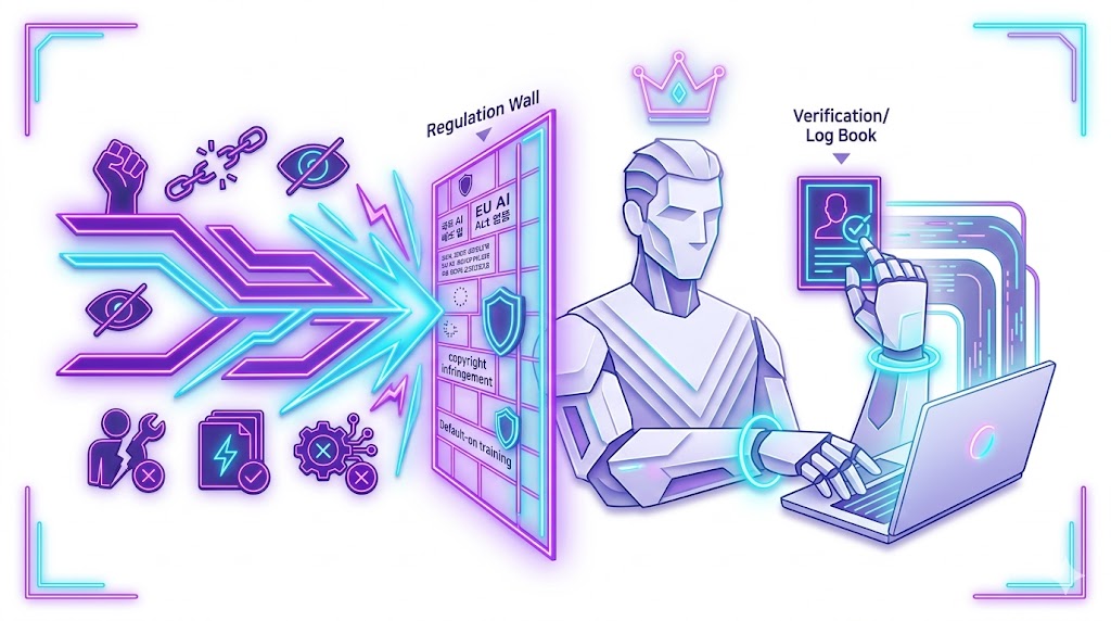 법적 대응은 지금 당장 두 가지만 챙기면 됩니다. 첫째, 한국 AI 기본법상 생성형 AI 기반 서비스를 제공한다면 이용약관이나 서비스 화면에 AI 사용 사실을 명시해야 합니다. 실질 제재가 2027년부터라도 지금 구조를 만들어두는 게 나중에 편합니다. 둘째, AI 생성 콘텐츠는 반드시 사람의 편집·판단이 추가돼야 저작권 관련 분쟁 시 방어 논거가 생깁니다.